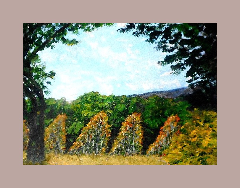 Zomerse herfstdag in de Lubéron, 40 x 30 cm, acryl (2020). Rechtstreeks prijs €475 incl. 9% btw. |